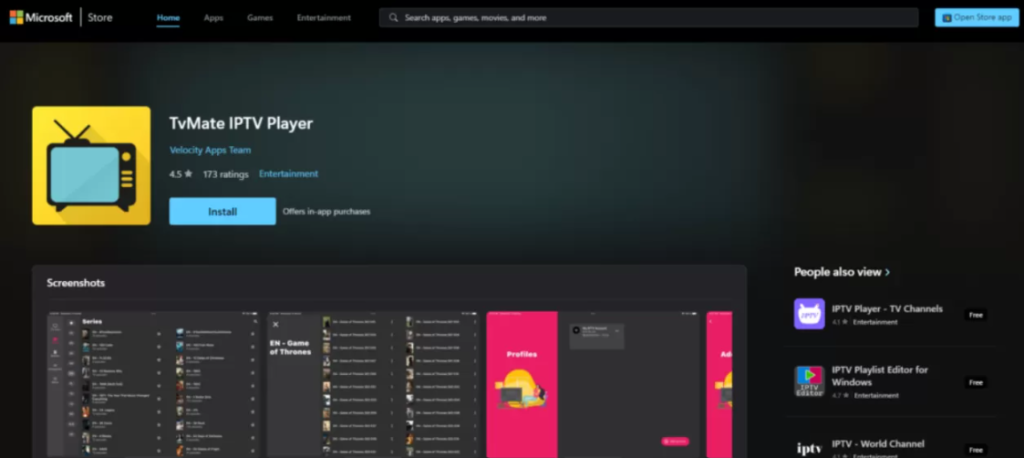 Para empezar a usar el mejor reproductor de IPTV para Windows, diríjase a la Microsoft Store y busque “TiviMate IPTV Player”. Presione el botón “Instalar” para descargar e instalar la aplicación. También puede acceder directamente mediante este enlace: Descargar TiviMate IPTV Player.